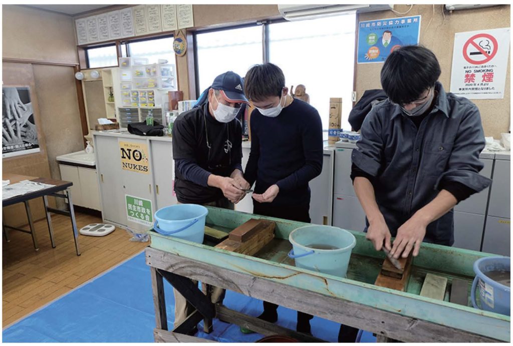また、地域に根付いた組合として小学生に木材に触れる楽しさを知ってもらう「夏休み親子工作教室」や、住宅相談をメインに包丁研ぎやバザー等を行う「住宅デー」を開催しています。住宅デーではベテラン組合員から若手に包丁研ぎ技術の継承も行われました。