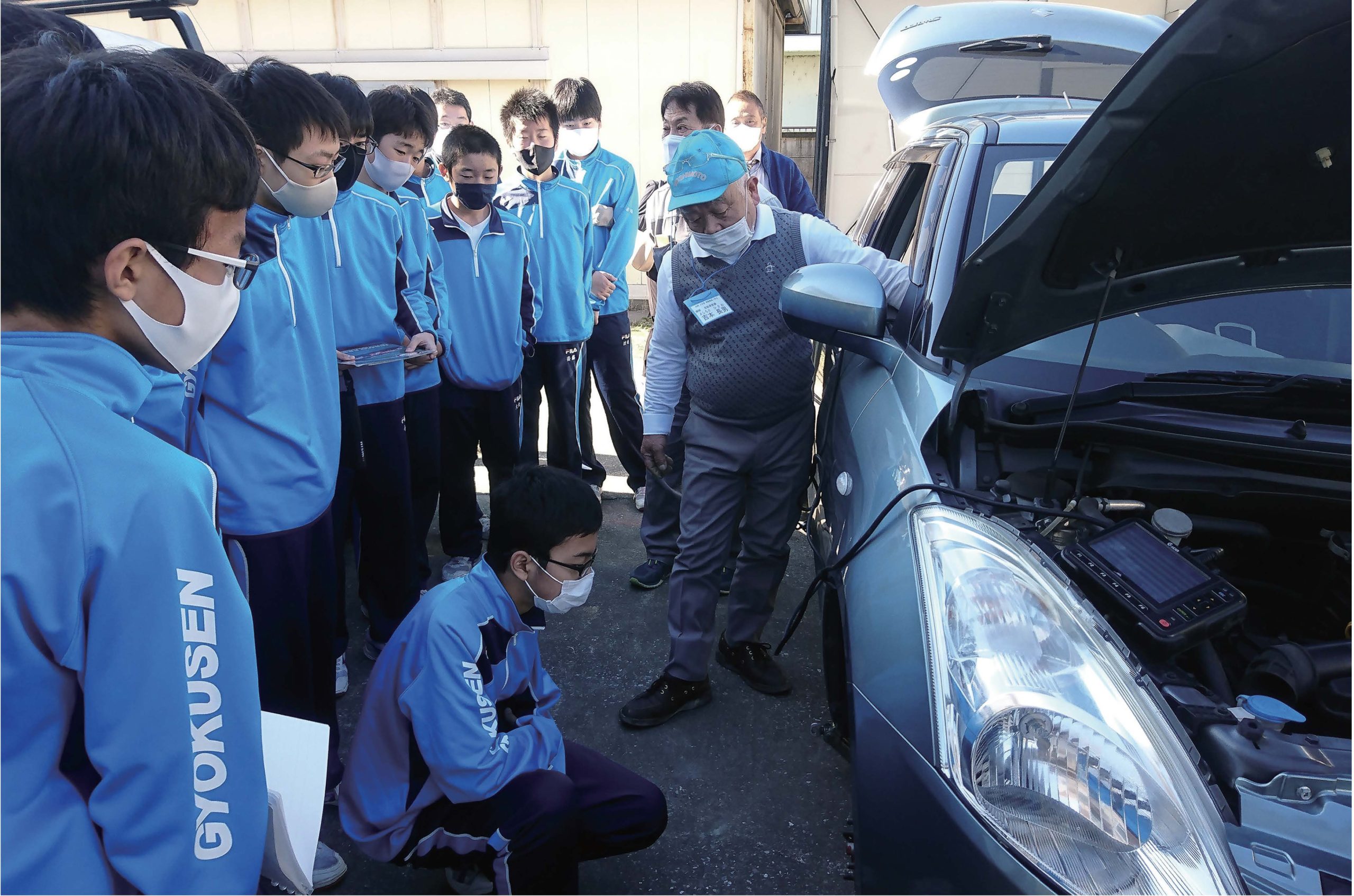 - 川崎市内中学校に於いて、スキャンツール(外部診断機)を使用しての故障診断の仕方やデモカーを使用しての自動車の構造説明など、「技能職者に学ぶ」講義・実技の開催
