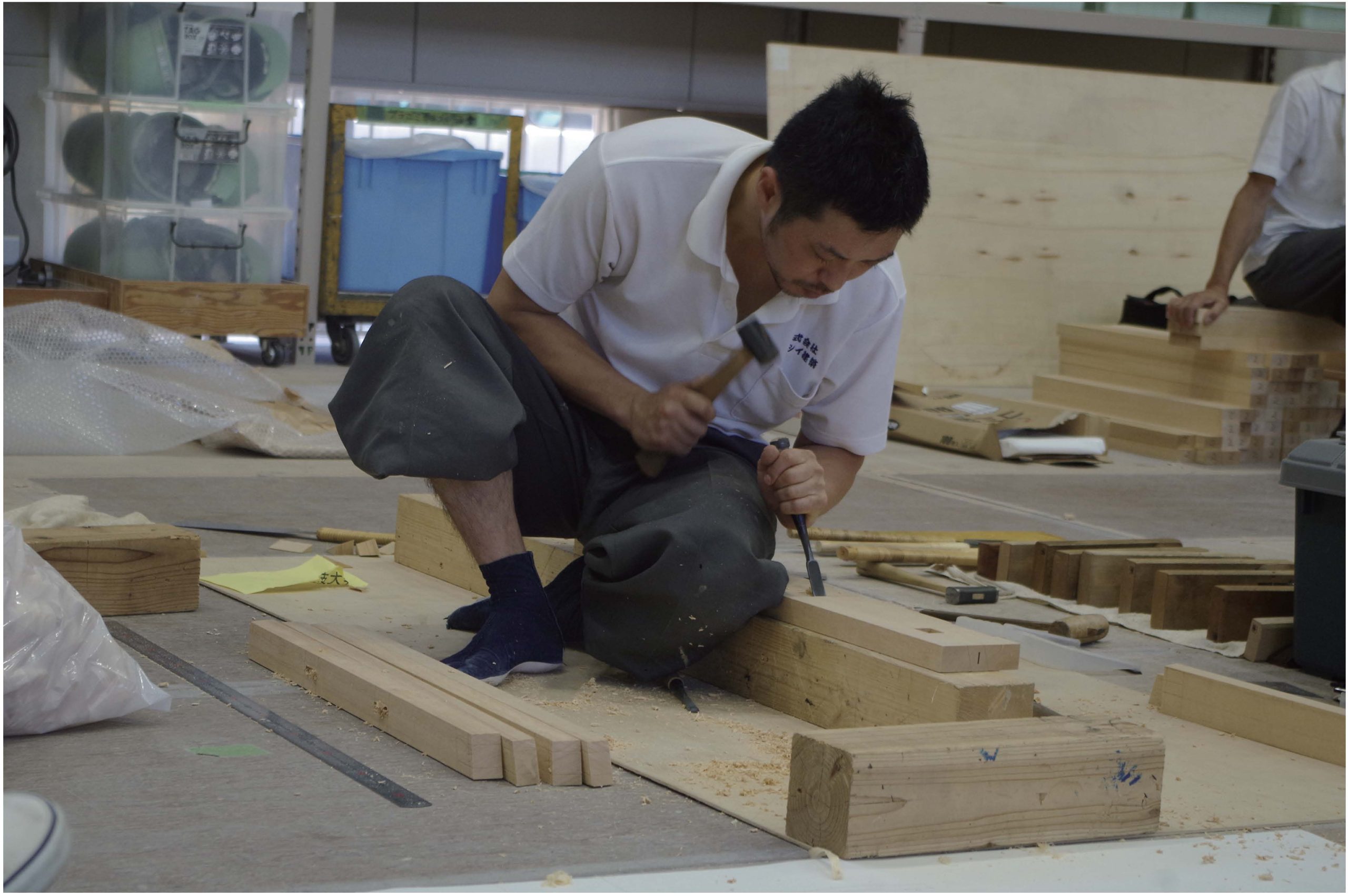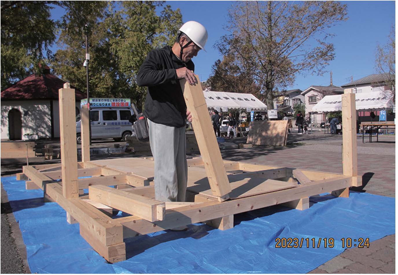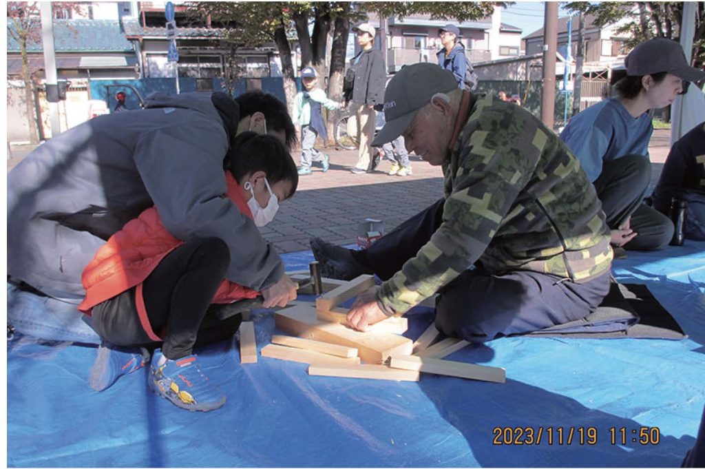 「地域住民のみなさんに職人の仕事や技能を理解してもらいたい」と、大師公園で住宅デーを開催しています。エ作教室や住宅相談、包丁とぎ、小屋組みの披露などをおこない、来場されたみなさんに喜んでいただいています。