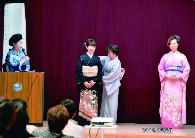 着付士は、初めてお会いするユーザーの目的、目途、体型、髪型に合わせ、瞬間的に満足して頂く見極める技が必要です。同時に着物や、帯の種類、素材、模様、小物とのコー ディネートや、帯の結び方も大切ですが、着物の歴史、染織など、アドバイスの為に幅広い知識が要求されます。