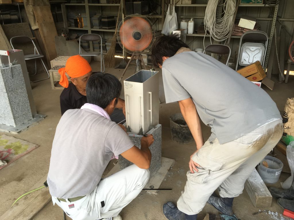 町場の石材店の仕事内容としては、建物の壁面への張り石や敷石・石塀などの建築工事、また寺社仏閣の灯籠や鳥居などの建立工事、そしてお墓をつくる建墓工事などが挙げられます。そしてそれらの中でも墓地に関わる仕事の割合は、変わらず大きいものがあると言えるでしょう 。